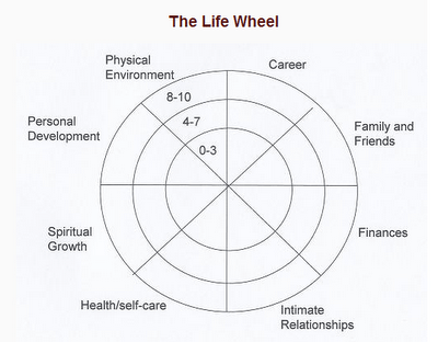 2. Rate each area listed on the wheel on a scale from 1-10; where 1=totally unhappy and 10=great.