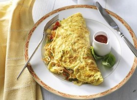 Tofu is cooked in peanut oil, sautéed with cabbage and peppers and seasoned with ginger and soy sauce in this Thai fusion frittata. Shallots are caramelized sweet and incorporated into this omelet’s egg base, while jalapeños the eggs a kick of spice.