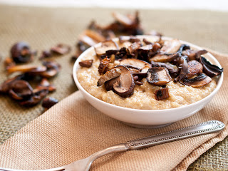 - Once your risotto is cooked through (taste it to verify that the quinoa is cooked), turn heat to low and add the cheese, cream and salt and pepper to taste. Risotto should be soft and wet, not dry like typical quinoa. It should be firm enough to be served as a side on a plate, but soft enough to giggle hen the plate is shaken. Stir in the mushrooms just before serving.