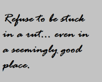 - Refuse to be stuck in a rut… even in a seemingly good place. When you stay relatively still for long time, you put down seeds and as time passes, these seeds develop stronger and stronger roots, making change more difficult. The longer you stay still, the more people will relate to you based on your current position. And, this may be familiar, but your thoughts and feelings become repetitive, circular and as time passes, little is changing in your life.