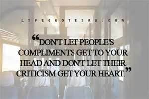 Okay, you say in theory this sounds great, but in practice, I’m only human and like everyone else, I feel bad when criticized and happy when complimented.Well, okay, then allow that 10 minute stretch and if you don’t let them eat at your consciousness or self-esteem, then you’ve succeeded. Remember other people can offer great advice and suggestions, but they can’t be the judge of your self-worth. If people throw compliments your way, thank them and focus on your goal. If people are critical of you, thank them and focus on your goal. Because, in the end…. you and you alone are the master of your fate.
